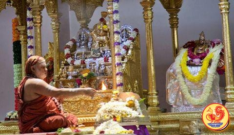 Jagadguru performing Harati to Goddess Vara Mahalakshmi