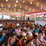 The Mahayaga is being conducted at the Jagadguru Sri Chandrashekhara Bharati Sabha Bhavanam. The Jagadguru graced the Mahasankalpa ceremony, which was read out by Sri Tangirala Shivakumara Sharma and after that the Ritwik varanam took place. Vidwan Sri M A Nagaraja Bhat, Principal of the Sringeri Pathashala was nominated as Pradhana Acharya and Vidwan Vinayaka Udupa as the Vachaka. The Pradhana Acharya, the Vachaka and all the Ritwiks of the Mahayaga then received the Purnaphalam from the Lotus hands of the Jagadguru. The Saptashati Parayanam started from 10 am onwards.