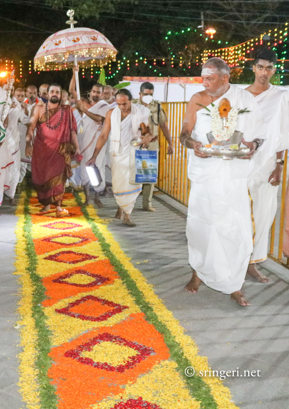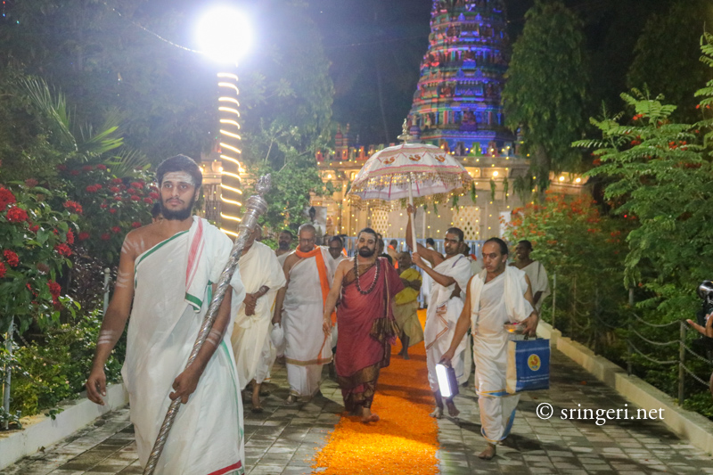 After camping at Mysuru, Hebbasuru and Magadi, Jagadguru Sri Vidhushekhara Bharati Sannidhanam arrived at the city of Bengaluru on May 13, to a rapturous welcome by hundreds of eager devotees.